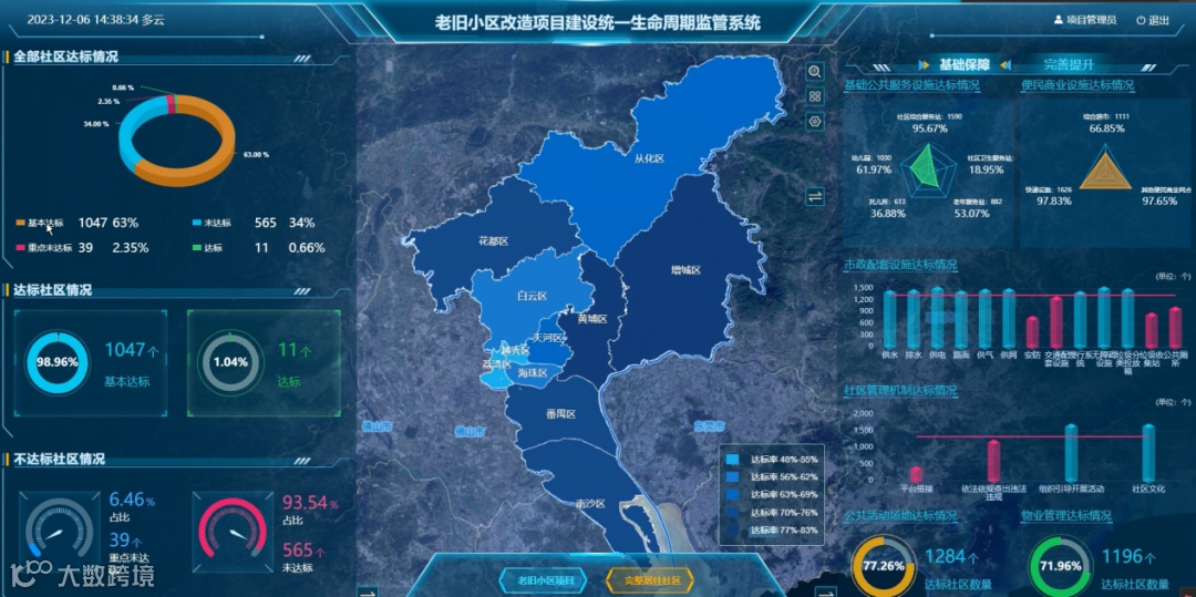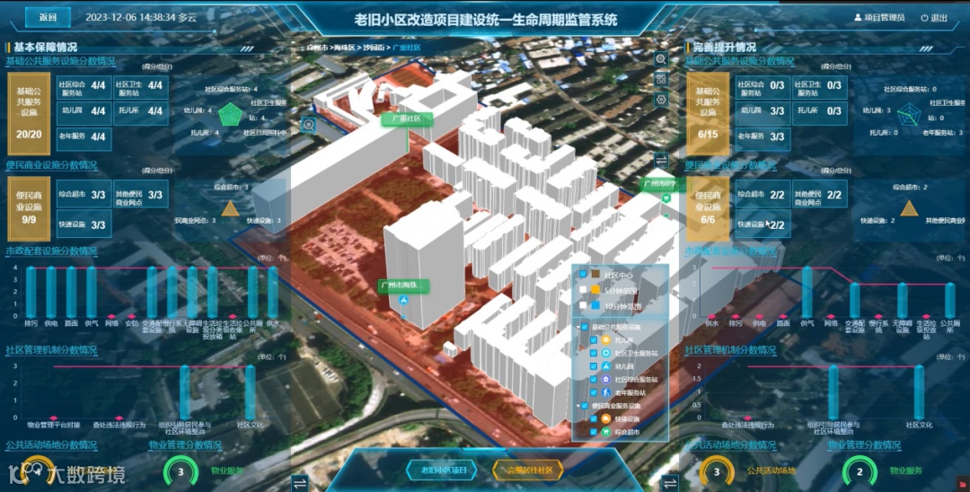 建设补短与智能监管相结合,在调查全市社区基本信息,构建完整居住社区数据库的基础上,基于现有老旧小区系统搭建了完整居住社区系统模块,可提供数据采集录入、数据分析统计、专题数据及改造成效智能化展示等功能,并联动老旧小区改造等城市建设工作,直观反馈完整居住社区补短情况,有效提升完整居住社区智慧化监管水平。