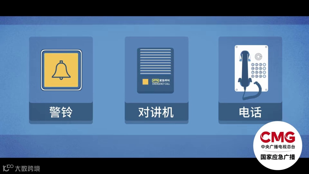 1. 立即用电梯内的警铃、对讲机或电话与管理人员联系,等待救援。