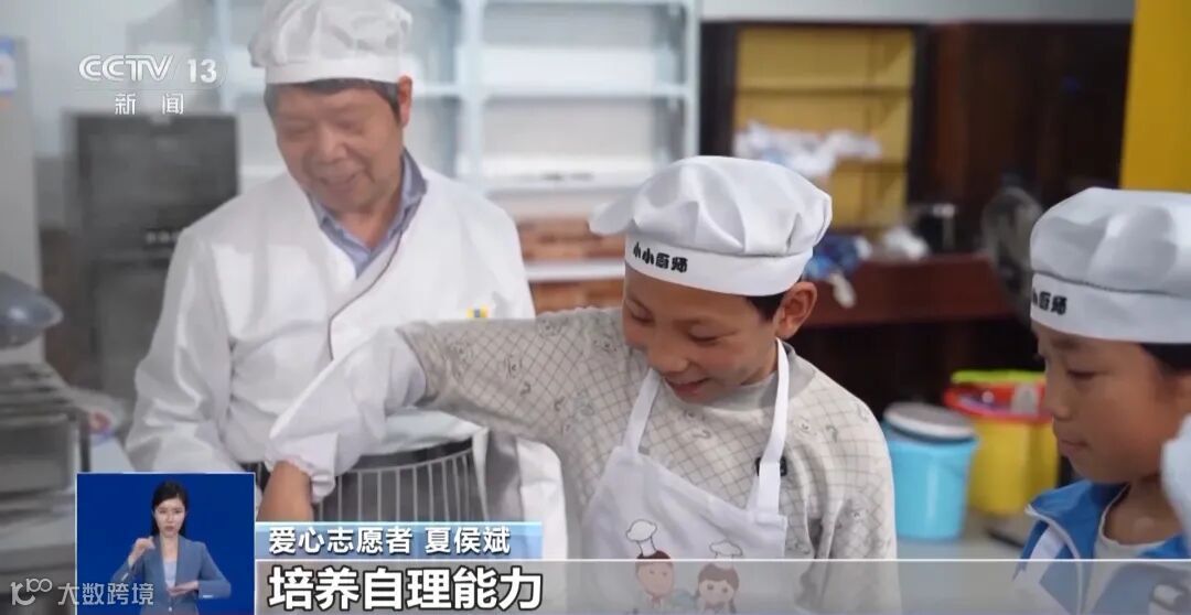 爱心志愿者 夏侯斌:主要是帮助孩子辅导作业,教他们书法,还有就是为了让孩子们动手能力更强,培养自理能力,还经常在这里教他们炒菜做饭,这些孩子我看着他们就很亲切,就把他们当成自己的孩子。就是在这么一种动力下,才把志愿者做到现在。