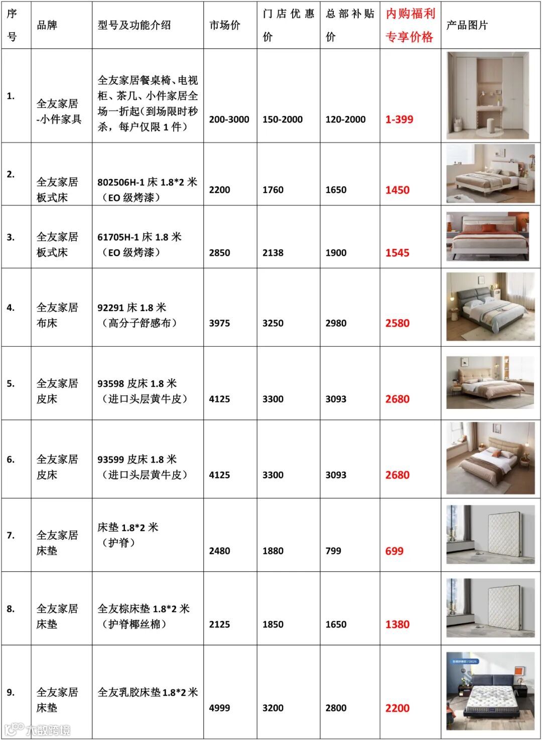 注:所有产品均为全友家居真品,终身提供售后维护,此次内购福利会价格保证为全年最低价,买贵无条件返差。