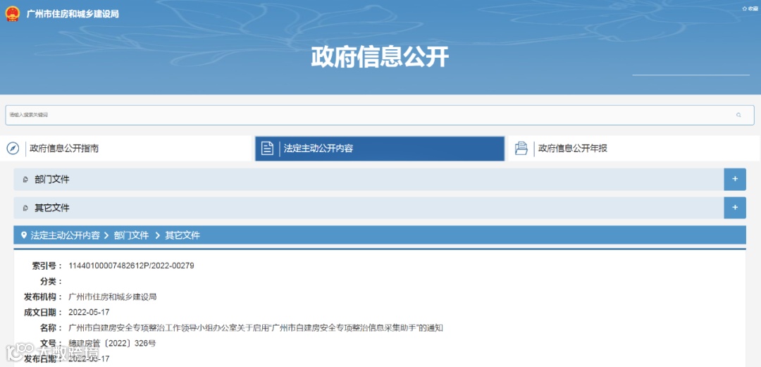 为做好我市自建房安全专项整治工作,运用信息化手段进行数据整理及系统化管理,根据《广州市自建房安全专项整治工作方案》,我办聘请第三方技术公司开发了“广州市自建房安全专项整治信息采集助手”(H5页面)并正式启用,请各区认真组织开展整治信息采集工作,发现使用问题请及时反馈。