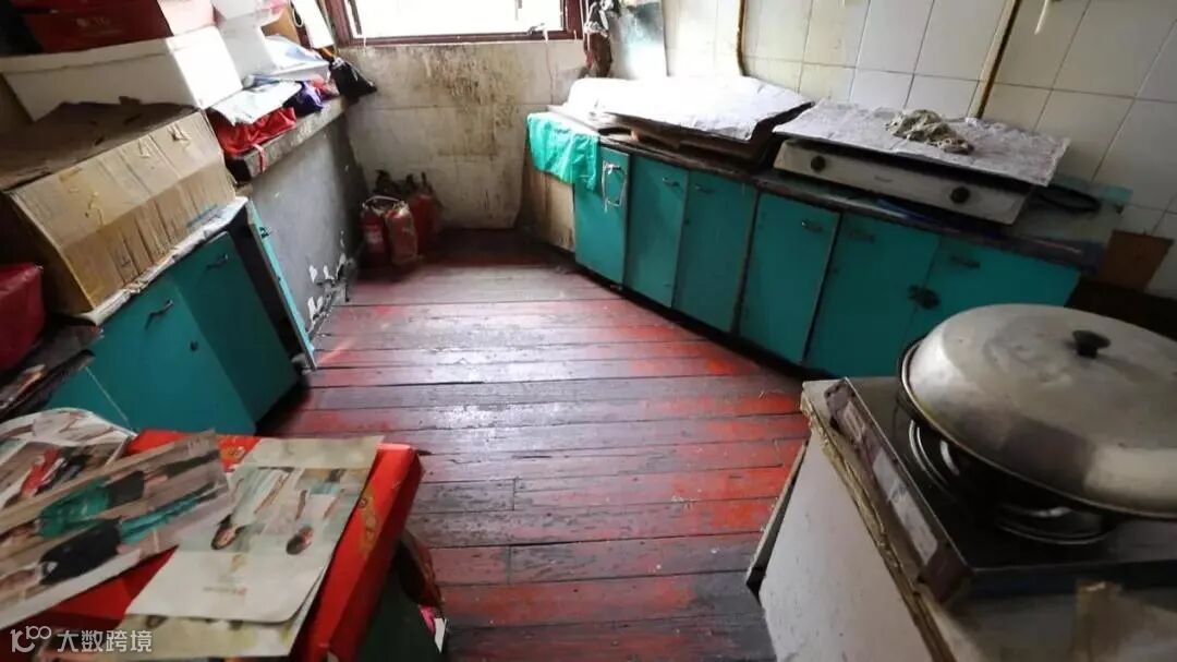 △由于建筑结构的老化和缺乏维护,楼板渗水、墙体开裂、地板倾斜等情况在老旧小区十分常见。然而因为自费改造的成本难以负担,不少居民只得求助于非常规方式(如电视节目)的介入。图为《梦想改造家》的改造对象——上海外滩一居民楼,在改造前的内部环境。