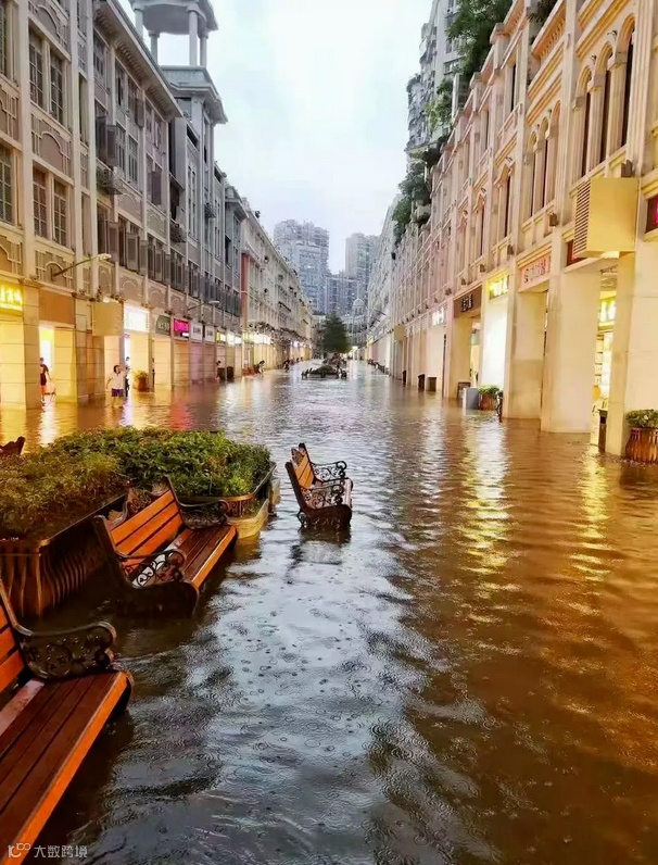△如果说城市化高速发展时期的建设给很多城市带来了种种城市病:如城市文脉消失、“面子工程”盛行、公共服务设施建设不到位等等,那眼下的城市更新也未必尽善美。更新行为往往并不能彻底解决城市已有的问题,甚至也可能导致出现新的城市病。图为2021年8月,台风卢碧使厦门中山路被淹。中山路最近的一次改造升级始于2020年4月。