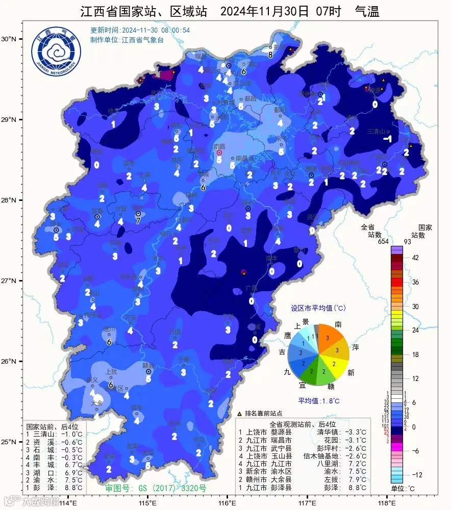 资溪、石城和南丰更是在0度以下