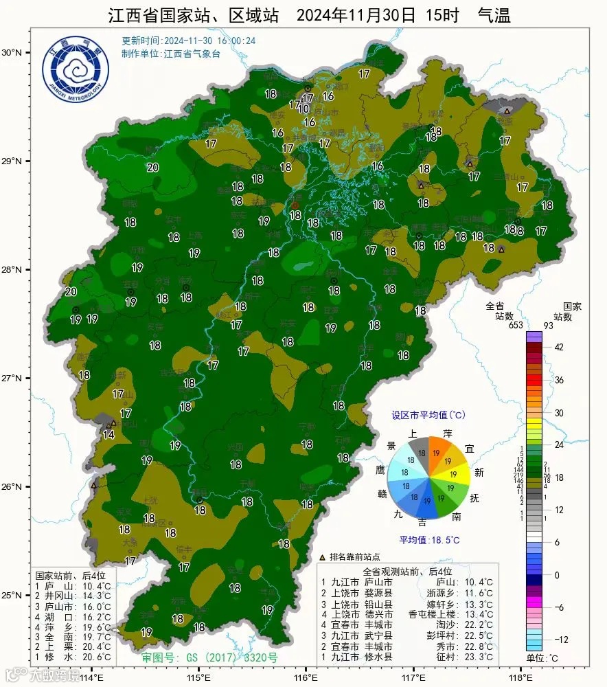 全省气温平均在18.5度