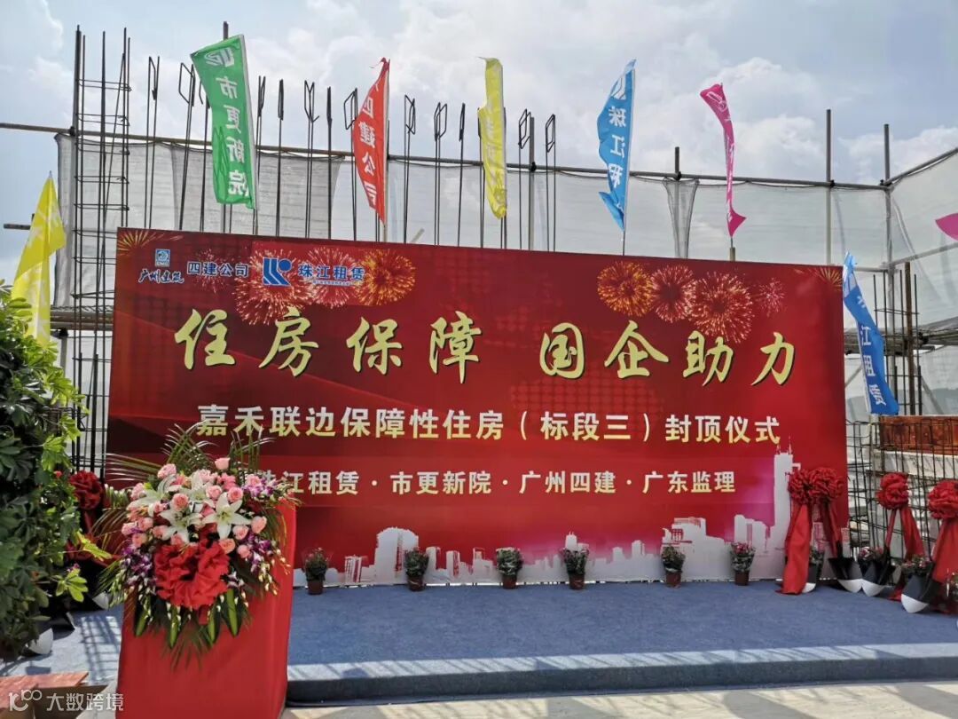 6月12日上午,我院作为设计单位与项目管理单位广州市住房保障办公室、建设单位广州珠江住房租赁发展投资有限公司、施工单位广州市第四建筑工程有限公司、监理单位广东建设工程监理有限公司共同为广州嘉禾联边保障性住房项目A3、A4栋住宅楼封顶完成了最后的浇筑,这是广州在疫情得到阶段性控制后,全速推进复工复产、精准保障民生、落实“六稳”、“六保”的又一重要成效。我院骆建云院长、佟旋副院长及该项目相关设计负责人出席了封顶仪式。