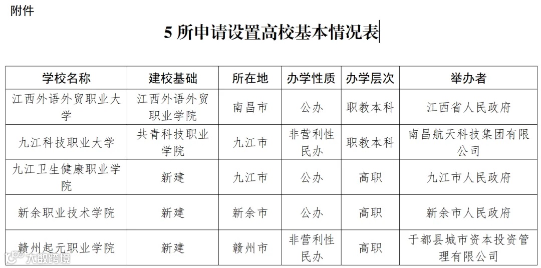 《关于高等学校设置事项的公示》