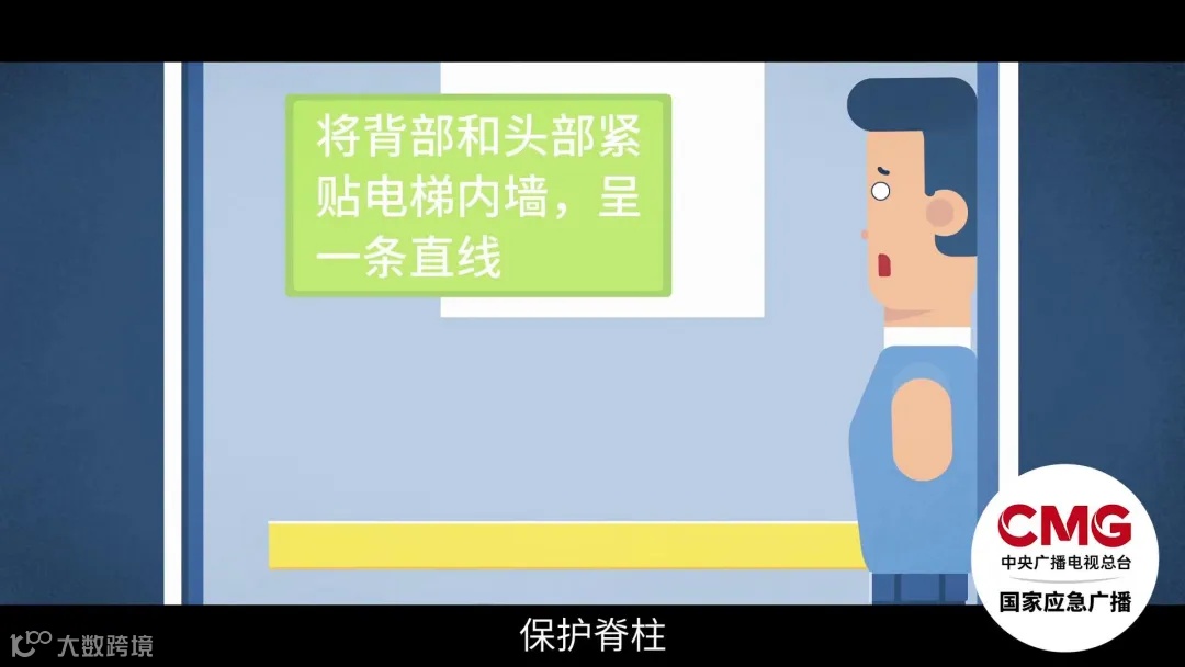 将背部和头部紧贴电梯内墙,呈一条直线,运用电梯墙壁作为脊椎的防护,同时弯曲膝盖、提起脚跟,以减缓冲力。