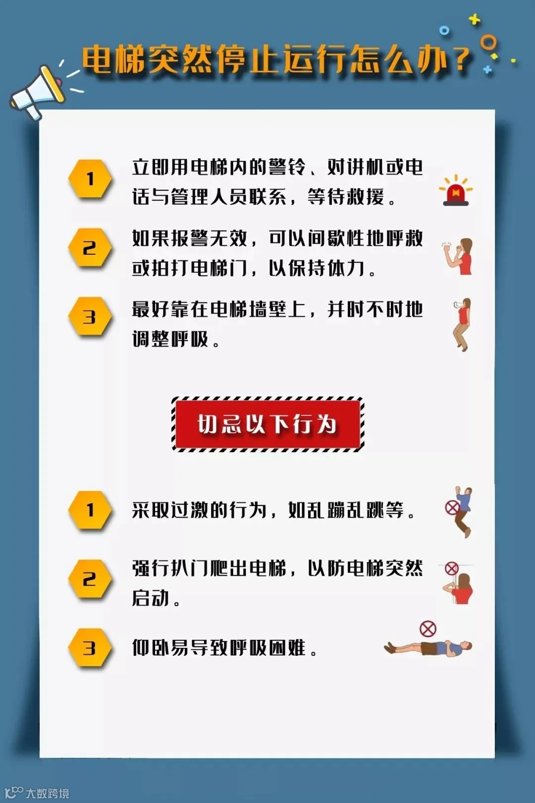 电梯突发故障,如何自救?
