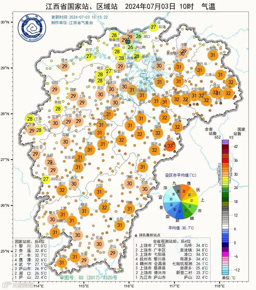 预计7月全市平均气温29.5~30.5℃,偏高0~1℃。7月4日开始全市将出现大范围高温天气。
