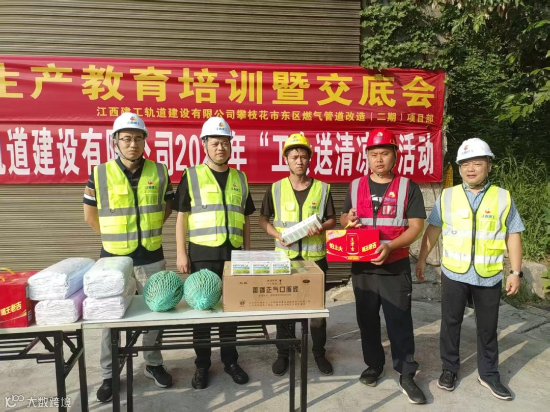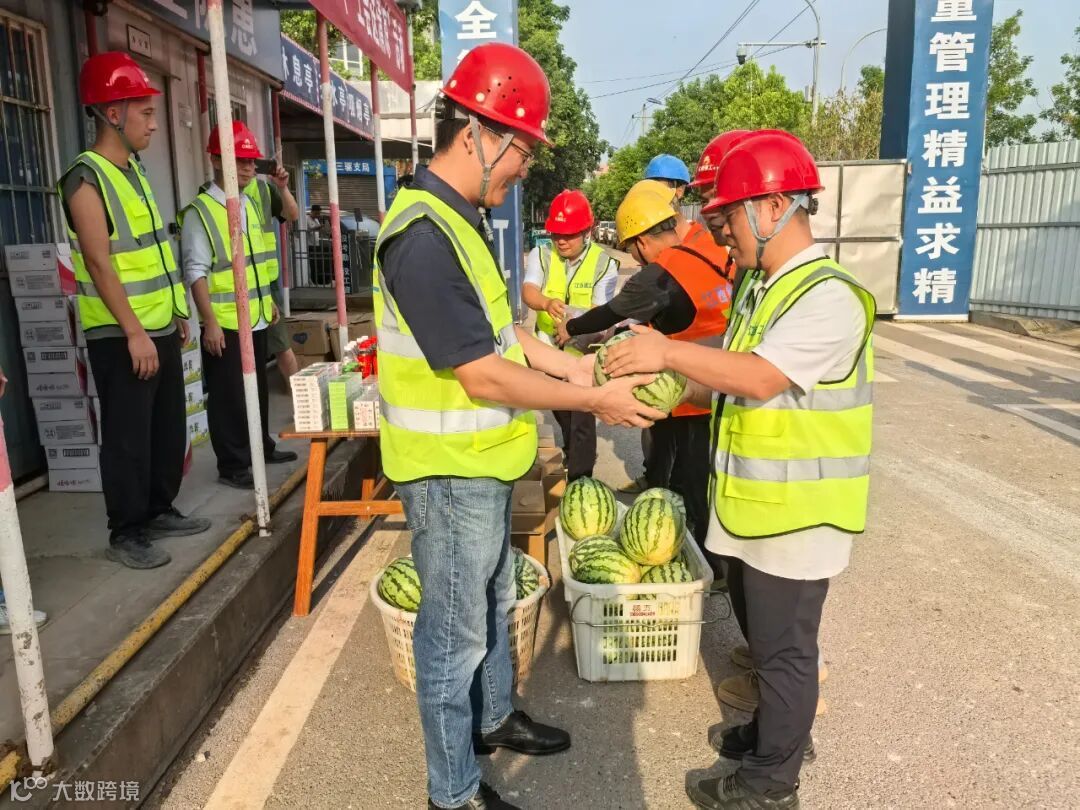 在重庆市大足区三驱镇隆河花苑安置房建设工程项目现场,展超一行刚抵达,就立刻将备好的矿泉水、西瓜、藿香正气水、风油精等防暑降温物资逐一送到工人手中。他强调,要科学合理调整作业时间,避开正午高温时段,严格落实防暑降温各项措施,配齐配足防暑用品,全力保障职工在安全健康的环境下作业。同时,他鼓励项目团队要咬紧目标、迎难而上,在保障质量与安全的前提下,高效推进项目建设,确保如期完成节点任务。