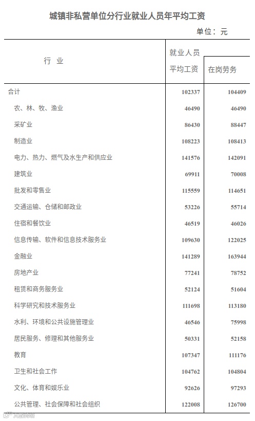 2023年新余市城镇非私营单位就业人员年平均工资102337元,比上年增加8496元,增长8.3%。