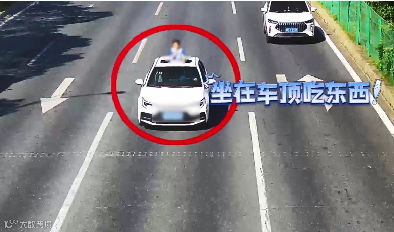 2024年7月11日上午,一辆白色小轿车行驶在仙女湖大道,一个小男孩将身体探出天窗外正在吃东西,这一危险行为引起了路边群众的注意,第一时间对其进行了举报。男孩探出天窗外的身体随车辆运行不断摇晃,如果出现意外,情况会十分危险。执勤民警接到举报后,立即将车辆拦停。