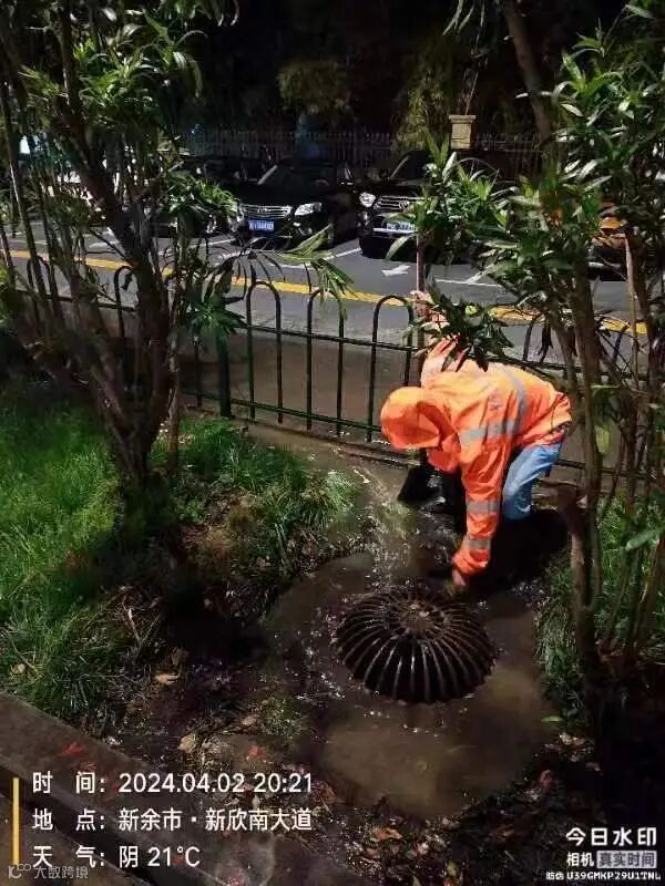 ▲4月2日晚8时,市城管局城西分局队员在辖区内开展防汛值班巡查,发现长林路一窨井盖被雨水冲走,他们一边守护在雨水井口提醒过往人员注意安全,一边立即与市政管理处工作人员联系,及时修复井盖,消除了安全隐患。
