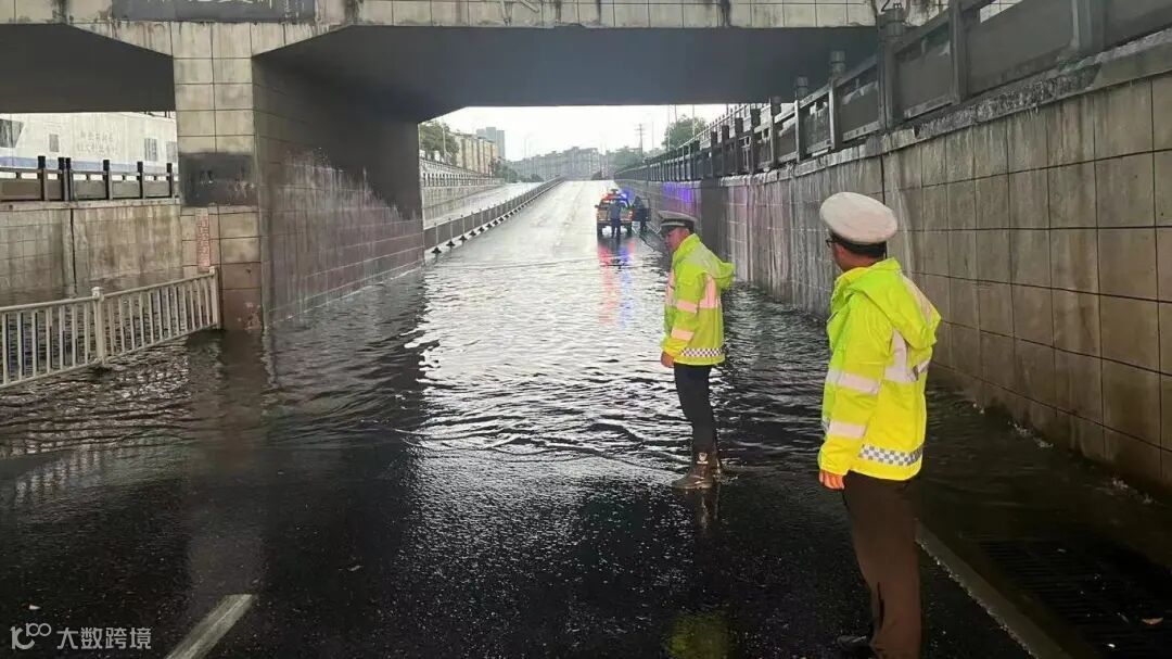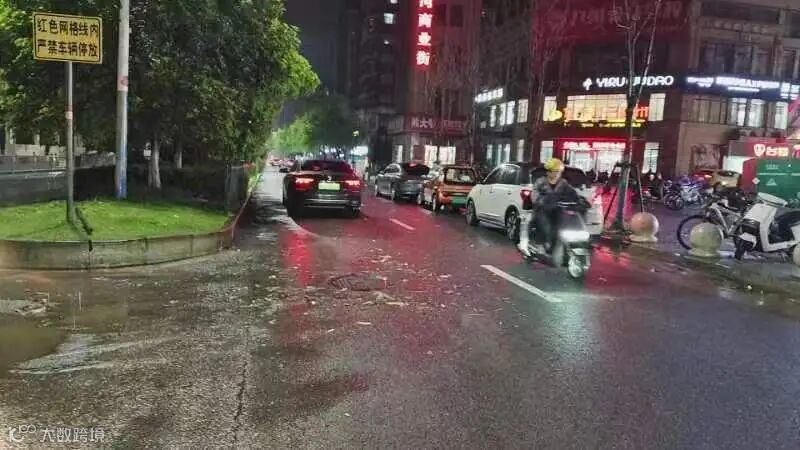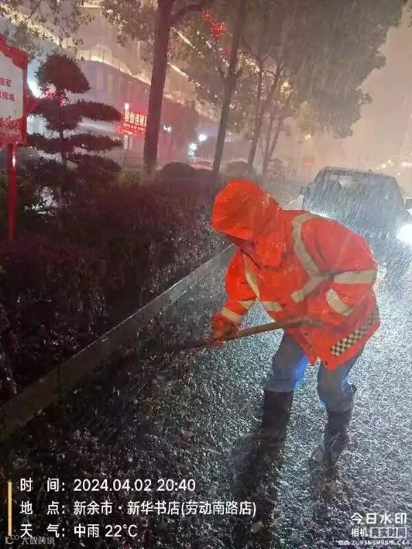 ▲突降暴雨,新余交警高新大队全体警员全力排查、疏导、清理辖区积水路段。