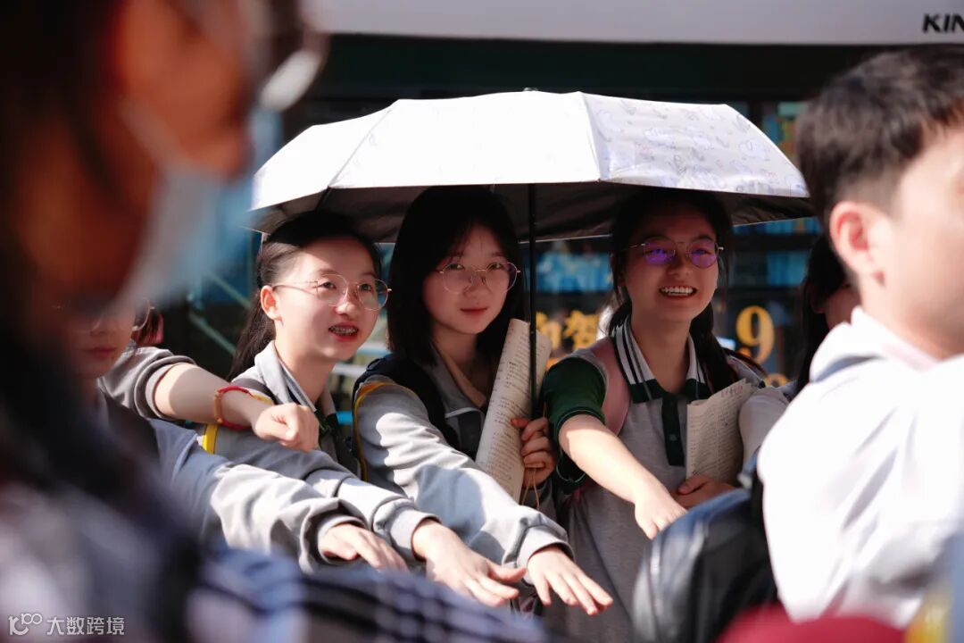 在新钢中学考点,考生们加油打气。记者吴彦樾