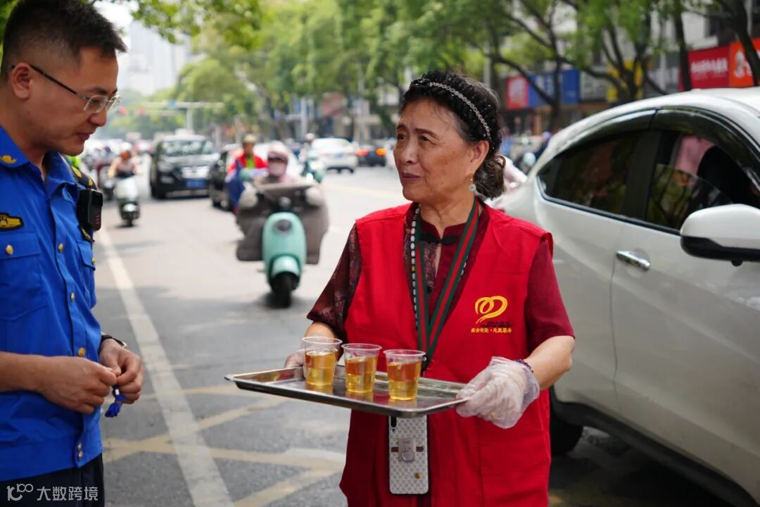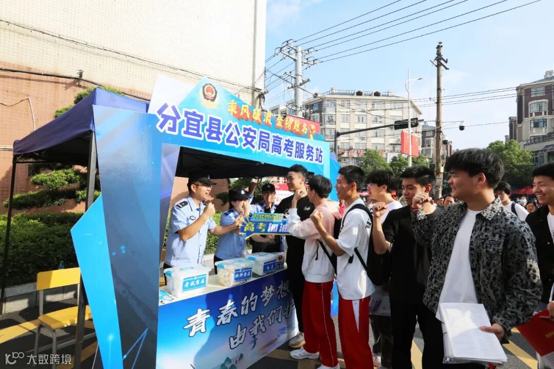 高考第一天,在分宜县第一中学考点,分宜县公安局民辅警在高考服务站为考生加油鼓劲。通讯员黄小军