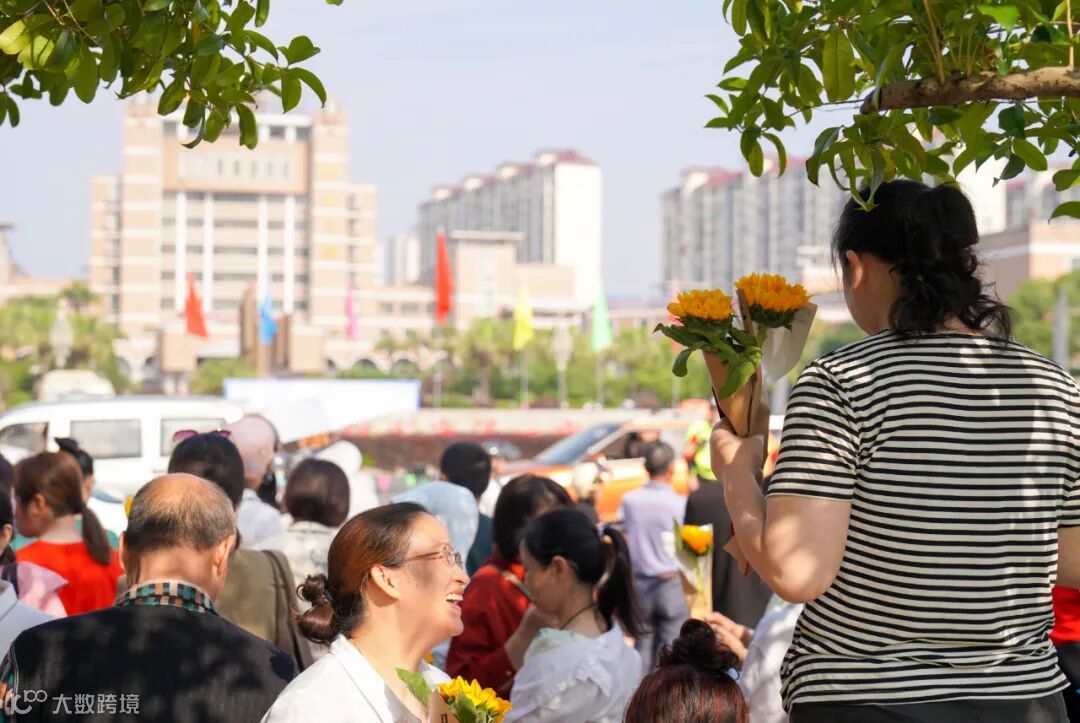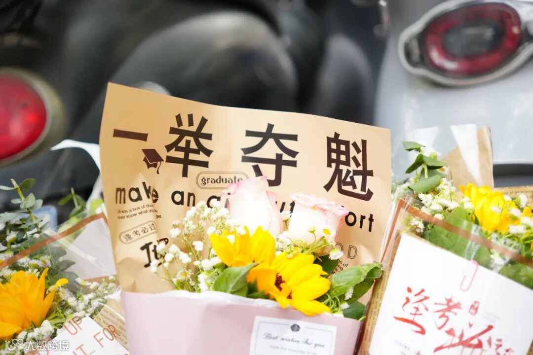 语文考试结束后,考生家长给考生送鲜花。记者吴彦樾