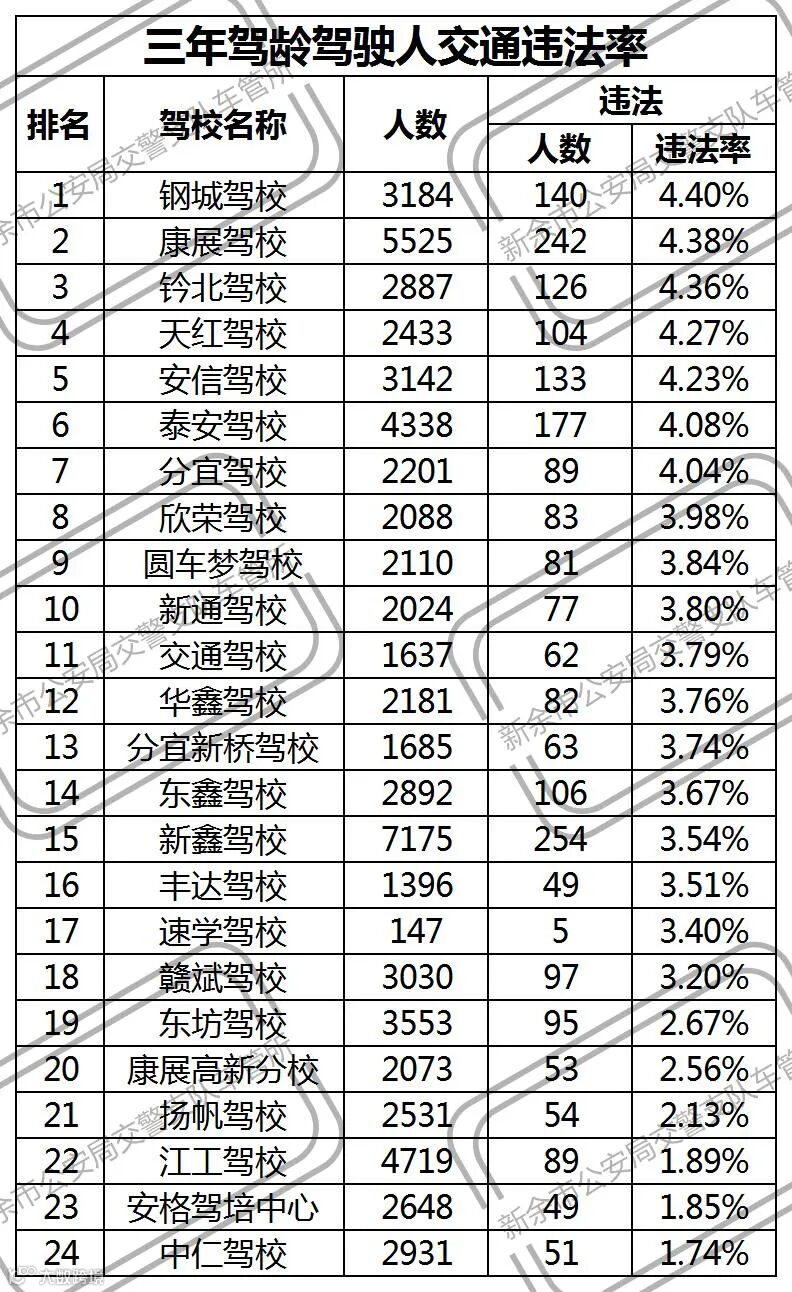为督促驾培企业提高培训质量,为社会输送合格驾驶人,同时便于学员挑选驾校进行培训。根据《机动车驾驶证申领和使用规定》交管部门每月向社会公布辖区内驾培机构,按照考试合格率确定培训质量排名的要求,现将2024年4月份驾校培训质量、三年内驾龄驾驶人交通违法率等信息公布如下: