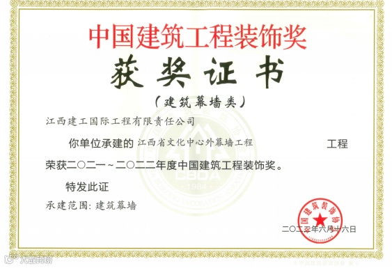 早在上世纪90年代,江西建工就成立了装潢公司,拥有建筑装修装饰和建筑幕墙施工专业承包壹级资质和设计甲级,装潢公司曾获评江西省首家“全国信得过建筑装饰企业”,连续多次被中国建筑装饰协会评为“优秀装饰企业”。2020年底,因集团战略调整,装潢公司并入江西建工国际,装饰装修由此成为江西建工国际重要业务板块,步履铿锵、发展稳健,跻身全国建筑装饰百强企业、全国建筑幕墙50强企业等,江西建工国际参建的新建文化中心项目(参建内容:装饰工程、幕墙工程)获评鲁班奖,另外还有一批项目荣获了中国建筑工程装饰奖,成为省内装饰装修行业的标杆企业。