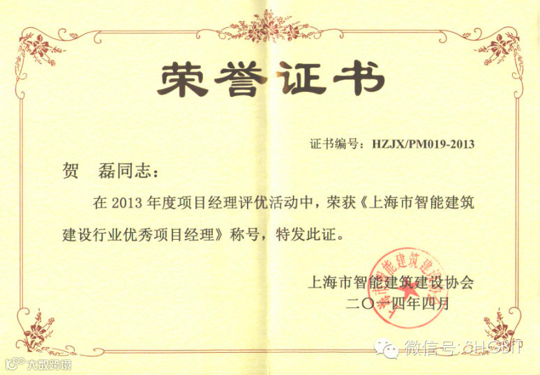 协会还分别授予上海金桥信息张志江和贺磊两位员工“上海市智能建筑建设行业优秀项目经理”荣誉称号。作为在上海金桥奋斗十余年的老员工,他们始终坚持奋战在项目第一线,独立组织承建了多项重大项目,不断在实践中锐意进取、开拓创新,累积了丰富的专业知识和管理经验。回顾多年的工作历程,张志江感慨万千:“作为项目经理,专业能力是必须的,行为能力是首要的,我们不能只做一个技术高手,更多时候应该是各方面资源与矛盾的协调者与平衡者,需要站在全局的角度看问题,多换位思考,多沟通。”贺磊也道出其工作真谛:即诚信第一,严格遵守合同约定,认真履行各项义务;在工期上决不拖延,在质量上决不马虎,以客户满意为目标,这就是一个项目经理应尽的职责。
