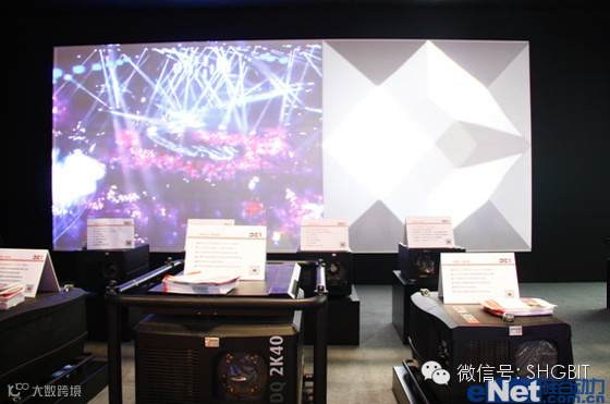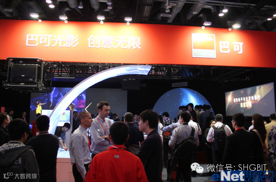 巴可带来了全线投影机产品,针对用户关心的显示应用,搭建异型投影、天幕投影、建筑投影、立体投影等多套先进的解决方案,创新的应用、炫目的视觉效果,令与会者目不暇接。“迷你版”欧洲歌唱大赛(ESC)舞台背景,使用了全球最高亮度40,000流明投影机HDQ 2K40,与巴可Encore视频处理设备进行视频管理。