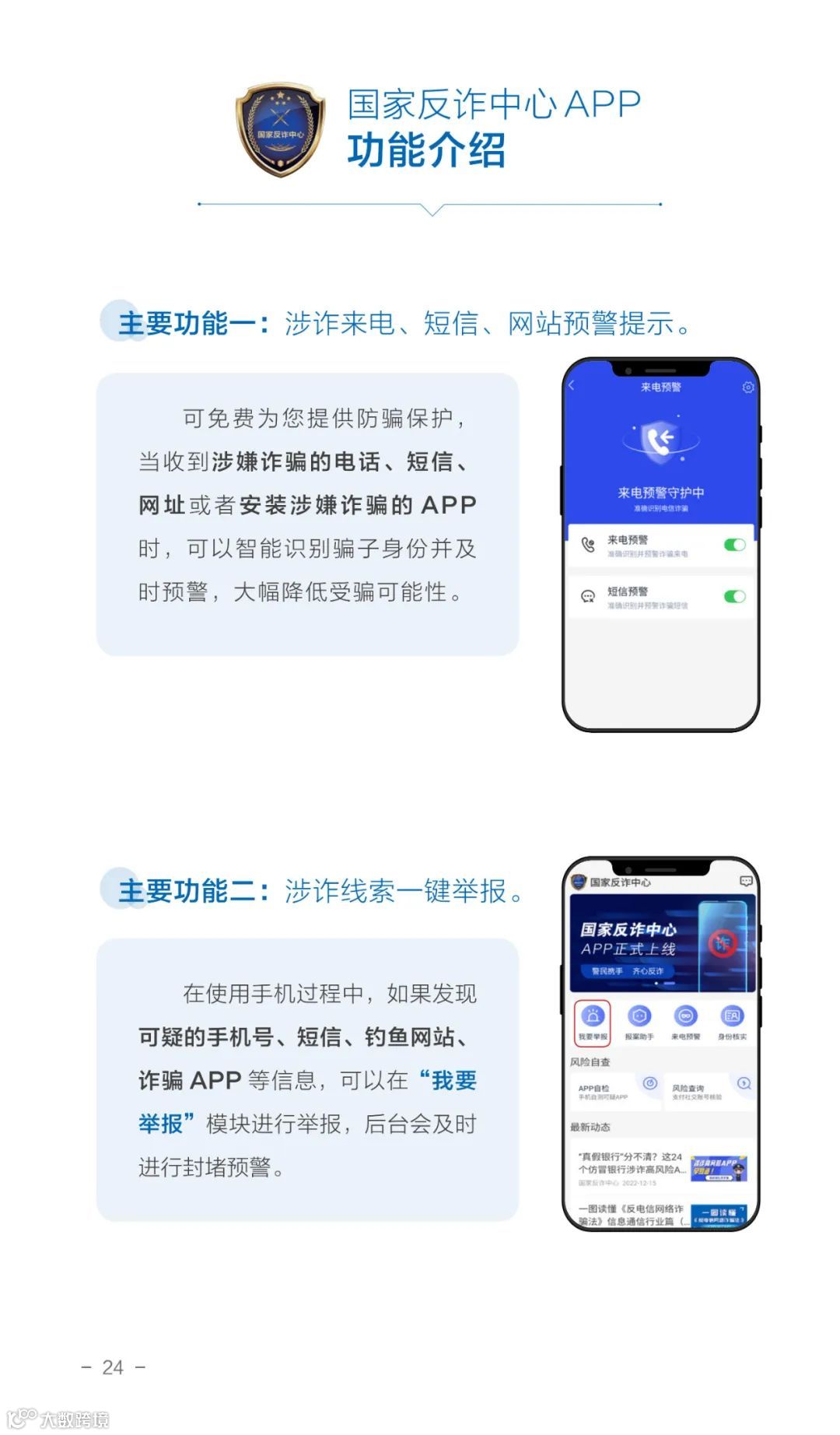 为进一步扩大反诈宣传覆盖面,提高广大群众防骗意识,国家反诈中心制作2023版《防范电信网络诈骗宣传手册》,向广大人民群众介绍了“电信网络诈骗中的十大高发类案”、“防范电信网络诈骗七大反诈利器”及《中华人民共和国反电信网络诈骗法》等重要内容,揭批了诈骗犯罪手法、解析了典型案例、宣贯了法律法规,同时进行了防骗提示。下一步,将以《防范电信网络诈骗宣传手册》为载体,通过新闻宣传报道、新媒体平台、组织线下宣传活动等方式向全社会开展广泛的反诈防范宣传。