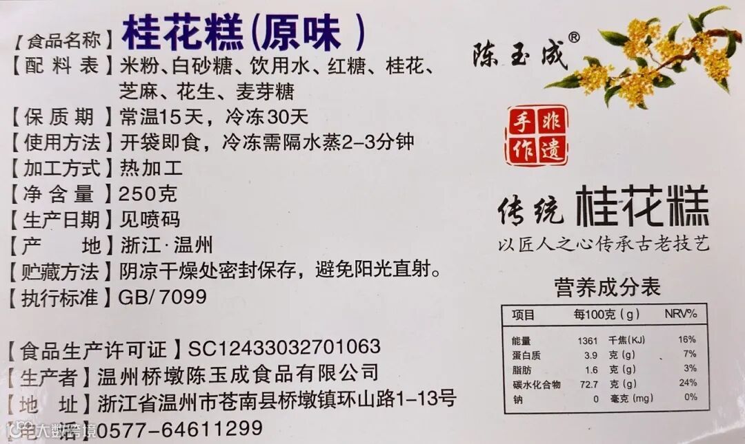 【品名】:陈玉成桂花糕