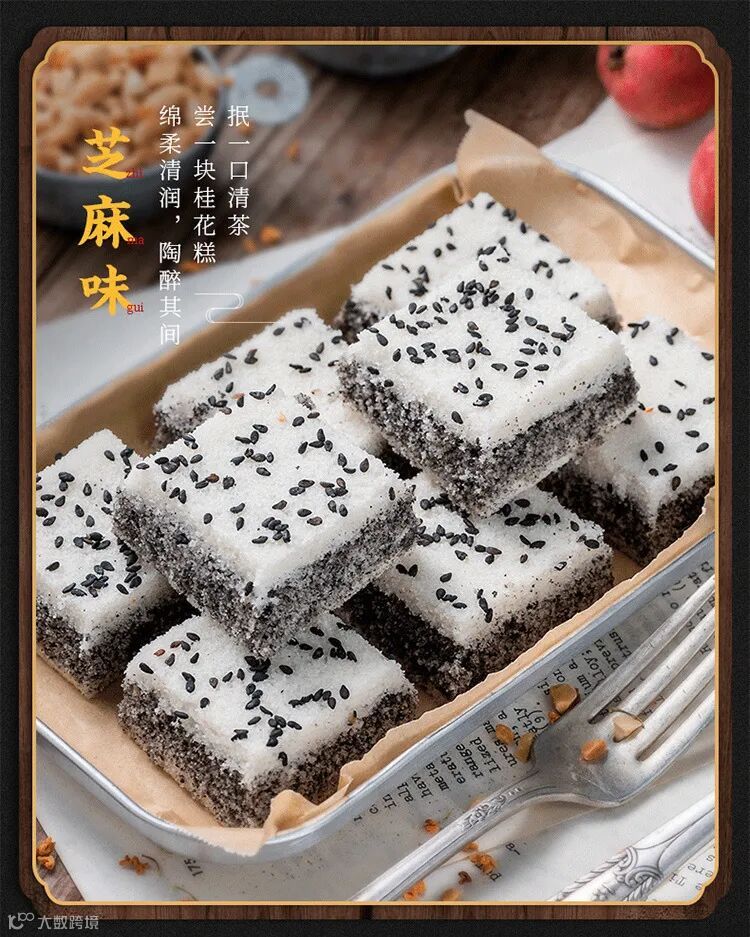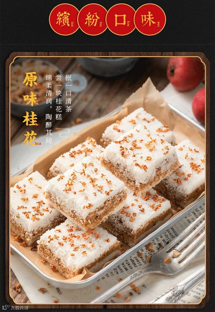 桂花糕有四种口味⤵️ 原味、红糖味、红豆味,芝麻味