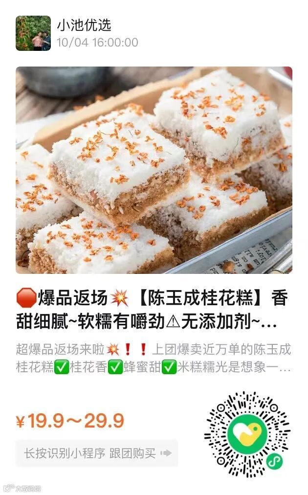 💙💙团品测评💙💙 墙裂推荐这款【陈玉成桂花糕】 👉浓浓的米香,松软微微甜,绝不腻人!! 👉下午茶来上2块简直太美好了~ 👉糕点饱腹感很强,拿来当早餐也不错哦 好评反馈根本看不过来🔥