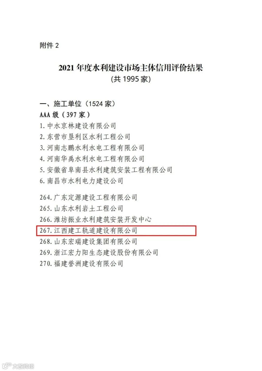 据悉,此次信用评价全国参与的企业施工单位1524家,其中获得AAA级评价的施工单位仅有397家。水利建设市场主体信用评价是我国水利建设市场十分重要的一项针对水利施工企业综合实力的考核评价,由中国水利工程协会、中国水利水电勘测设计协会、中国水利企业协会共同组织评审,评审从资质、人员、工程业绩、良好记录、不良记录等市场行为对企业进行评价打分,最终决定企业的市场信用等级,AAA级水利建设市场主体信用评价是最高评价。