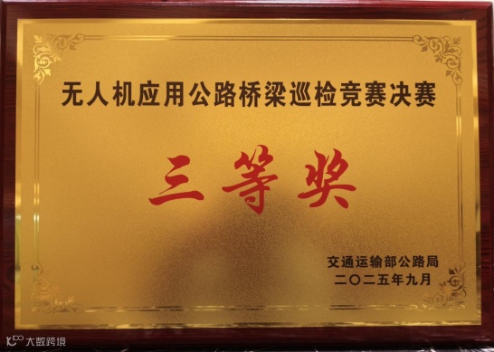 在9月11日至12日全国首届无人机应用公路桥梁巡检竞赛决赛中,全国47支参赛队伍激烈角逐(10强入围决赛),道路研究院携下属诚安公司组建5人无人机战队,凭借专业“智巡”实力从初赛脱颖而出,最终斩获三等奖。