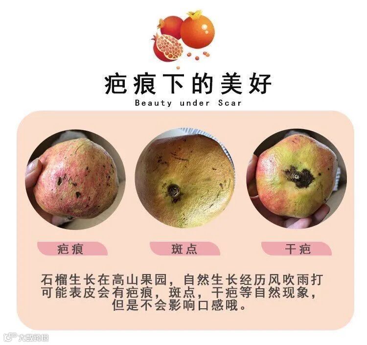 4、石榴颜色问题不售后,果子有花皮花斑,果皮不好看不售后