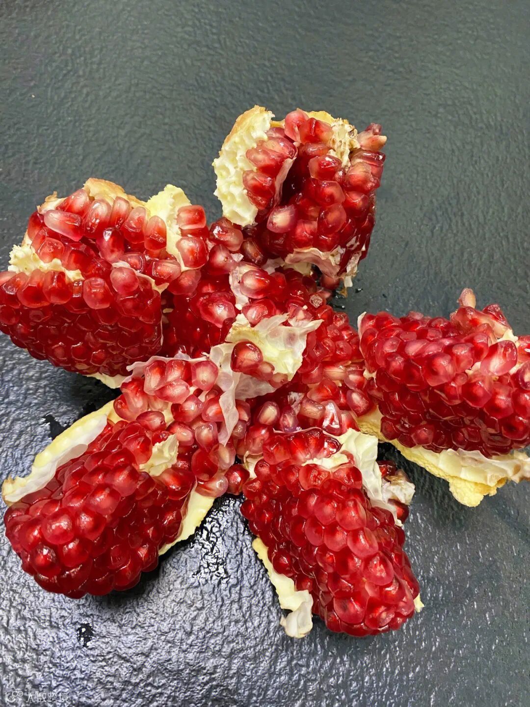 👉🏻剥石榴小技巧~ 👍🏻美味轻松享用,不用满手汁水 ✅用刀沿顶端划上一圈,然后沿着石榴内部的纹路划6下,用手掰开就好了。(不要切的太用力,以免切破石榴籽)
