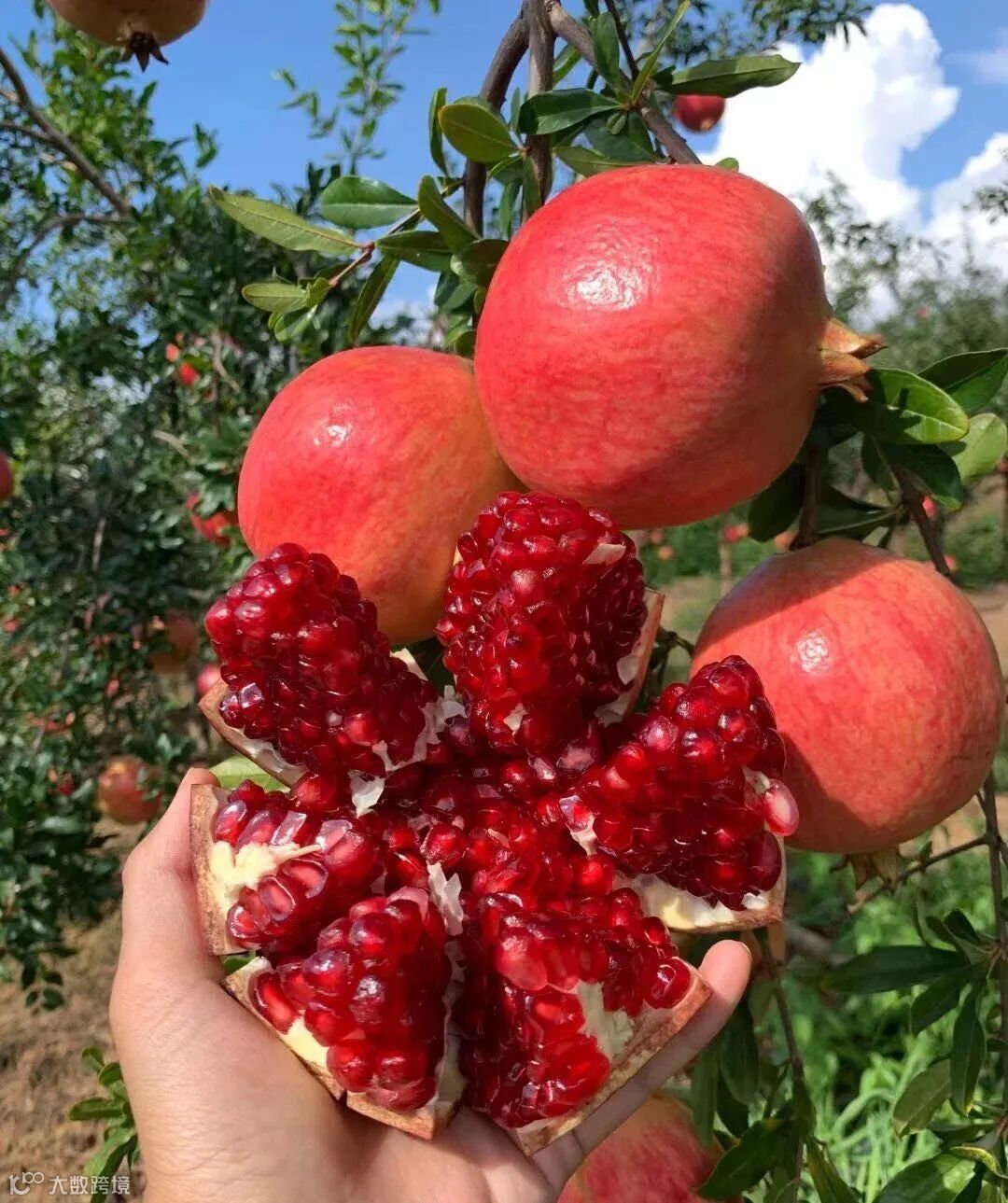 😍突尼斯石榴 产量稀少 树上自然成熟 无需打农药 施农家肥 物理防虫 让当地保留下了一份纯净的生态环境 👉🏻美味的石榴在这块纯粹的土壤中茁壮成长