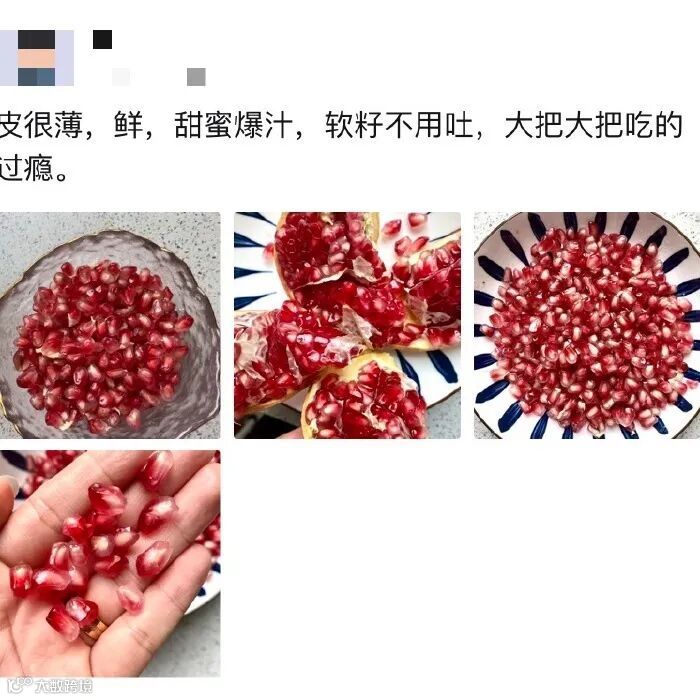 👍🏻突尼斯软籽石榴,被称为石榴中的精品 可以直接吃的石榴,籽非常的小又软 😋一大把放入口中,享受不吐籽的快乐,简直太畅快了!