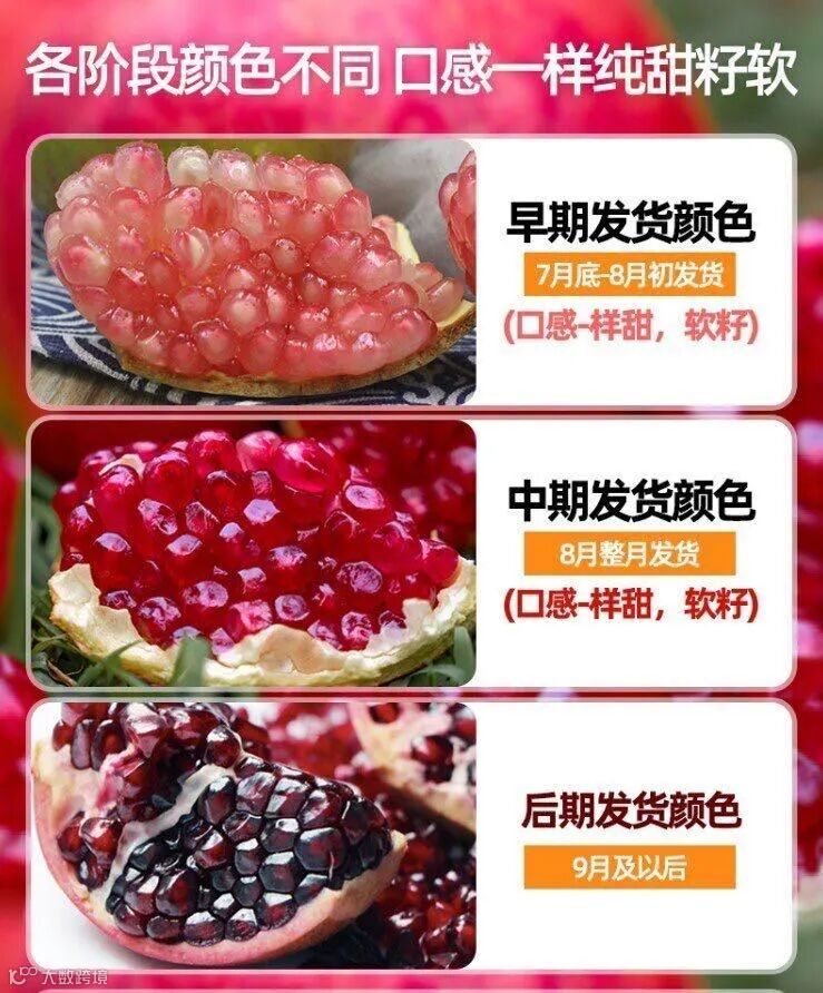 🔥【突尼斯软籽石榴】可以喝的雅诗兰黛!和去年同品质的一级果,非市场通货!去年累计销量3W➕的 石榴中的爱马仕🉑️甜度比一般的石榴更高 果肉的颜色也更红,香甜可口 咬上一口汁水在唇齿间流淌 老人和小孩也都喜欢吃,越吃越过瘾~现在是口感也是很不错的哦,大家赶紧囤哦❗❗