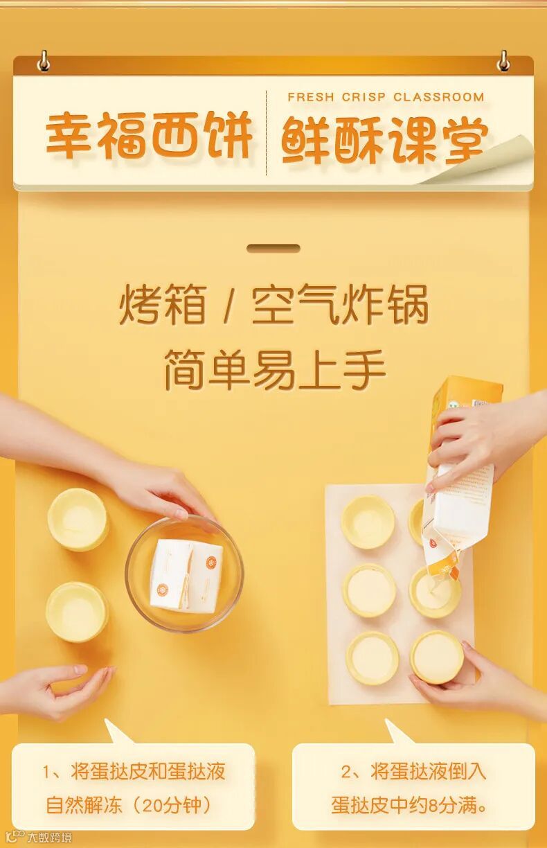 幸福西饼蛋挞到现在卖出去了1.5亿只,是2021年618、 双十一、双十二的蛋挞品类top1,真的是每9个地球人都 吃过一个的网红蛋挞,连起来都能绕地球了。