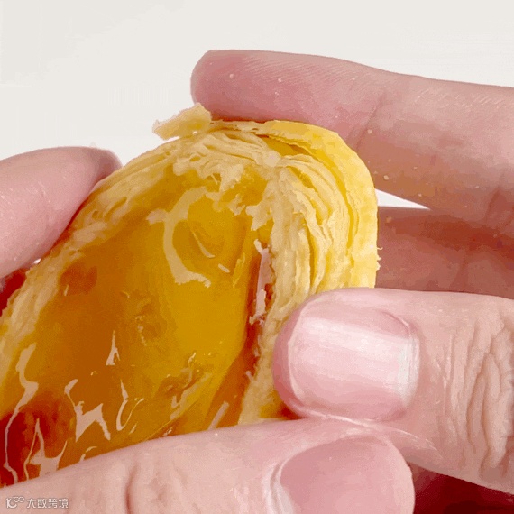 他们家这个蛋挞皮用的是加拿大红春小麦,起酥用“花旗特种酥皮油”,都是行业里国际公认的好原料,整个烤出来层层酥脆,真的一碰就掉渣,而且一点都不油,小麦香特别浓。