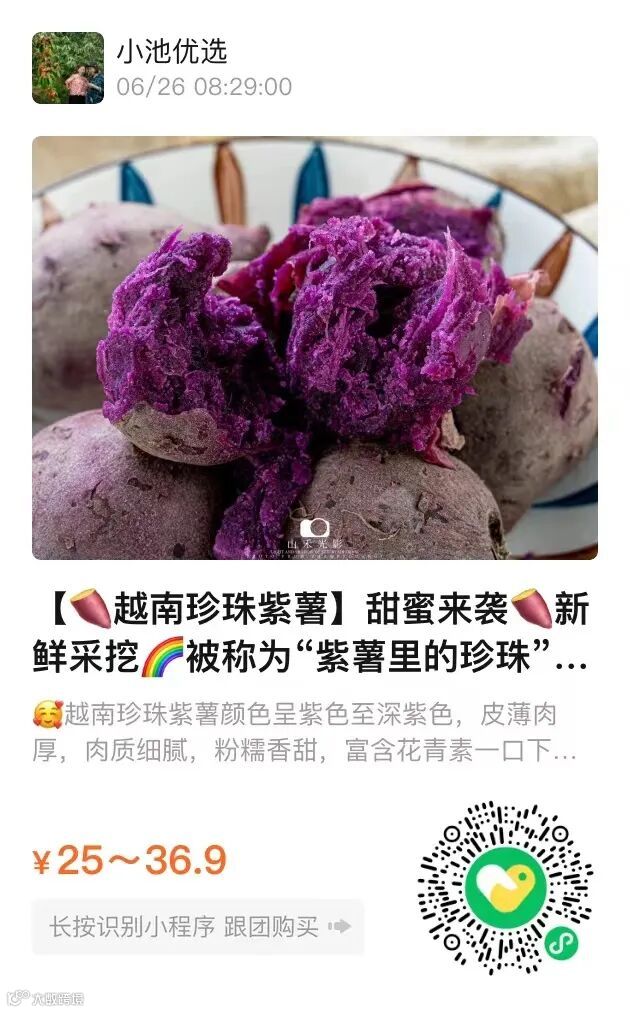 🥰现在正值珍珠紫薯的丰收季,老农们在地里采摘新鲜的紫薯,然后严格挑选出个头迷你,饱满圆润的,还带着泥土的清香😘
