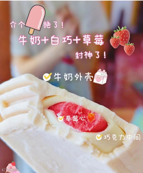 入口后的那一刻 真的被彻底的惊艳到了! 浓厚的奶味,香醇的口感 配上酸甜可口的草莓原浆内芯 像是一颗新鲜的草莓 在口中爆发开来