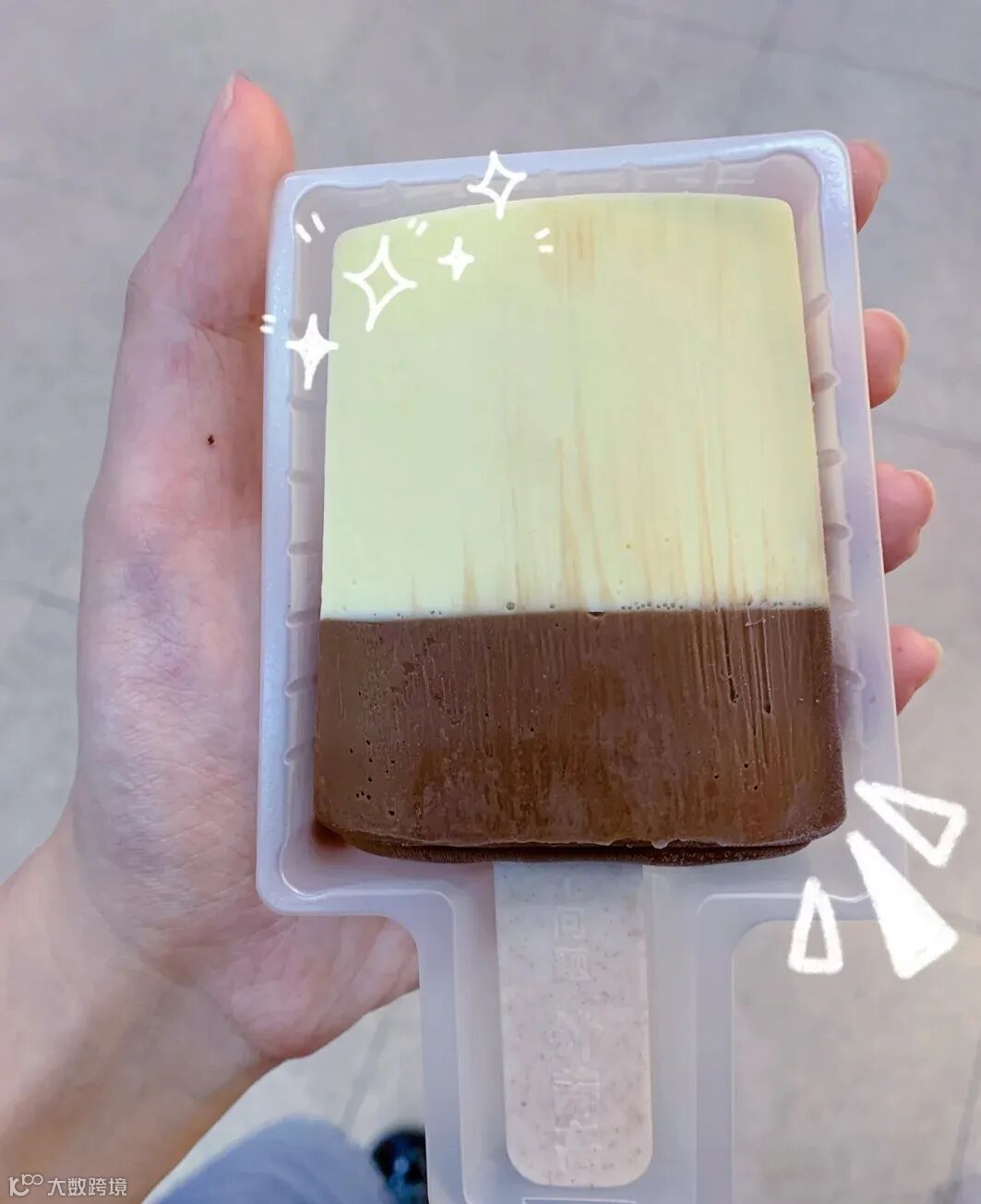 苦与甜的比例恰到好处黑白搭配,越吃越上瘾哈哈哈一根雪糕就能吃到两种口味:牛乳、巧克力太值啦!