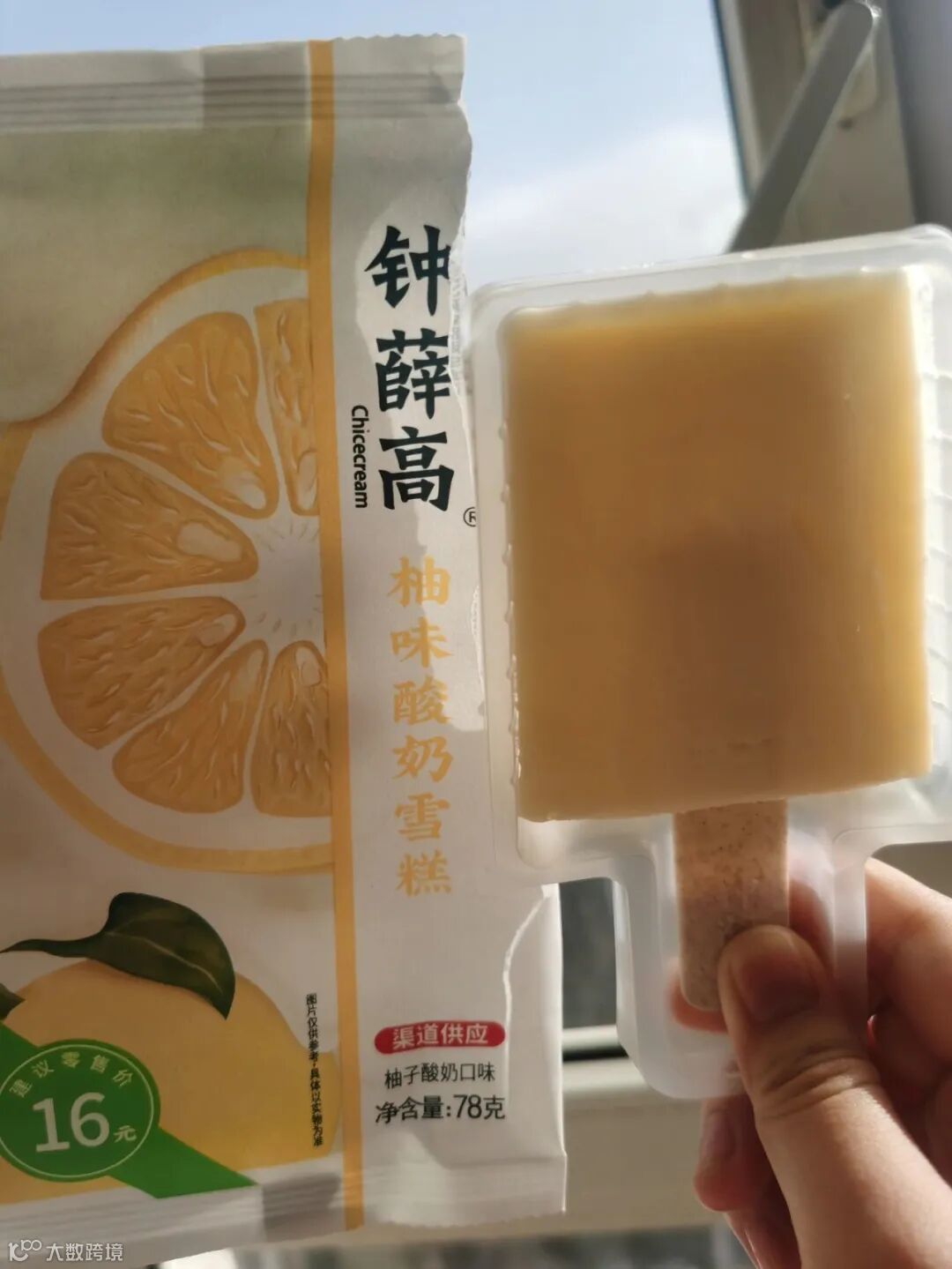 钟薛高柚味酸奶(柚子酸奶口味)雪糕醇厚浓郁的希腊风味酸奶,搭配清新的柚子汁一口咬下,奶香四溢,质地丝滑,绵厚、柔软充满整个口腔