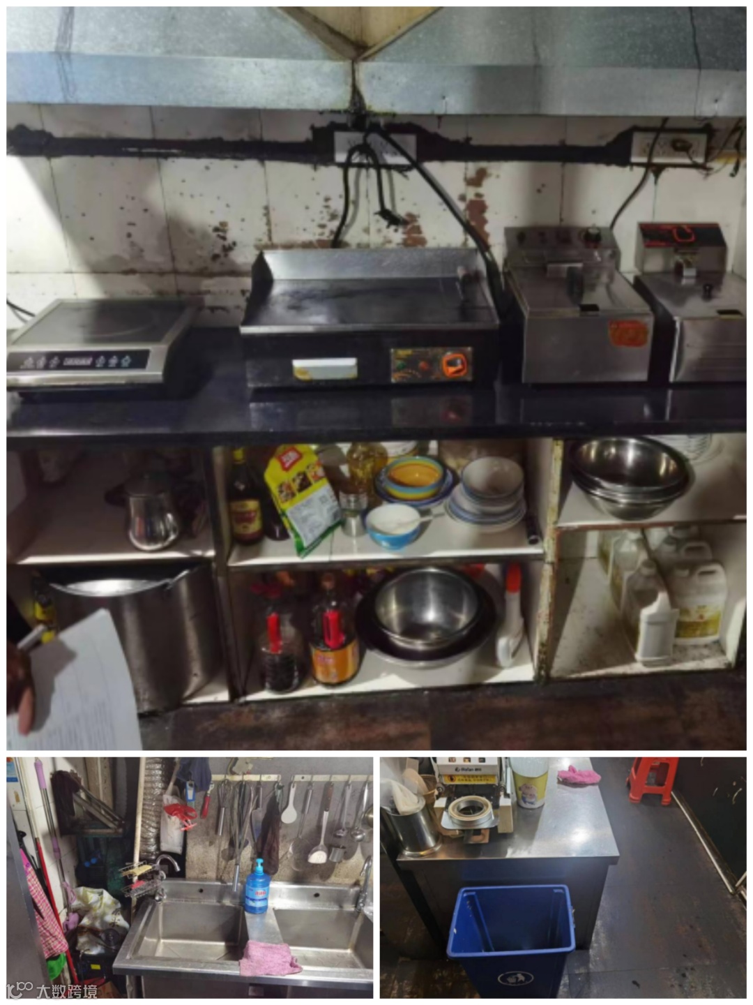 曝光理由:“三防”设施未使用,生活区与食品加工区未分开,垃圾桶未盖,后厨卫生差、乱。