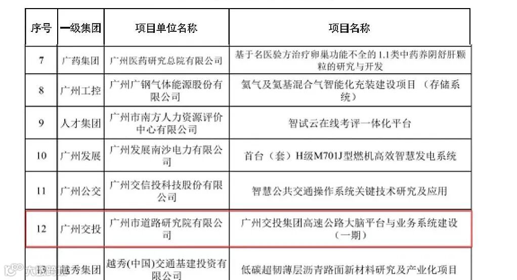 近日,道路研究院重点建设项目“广州交投集团高速公路大脑平台与业务系统建设(一期)”经过初审、答辩、专家评审、公示等环节,从广州市34个项目中脱颖而出,成功入选2023年广州市国资委创新创业项目专项支持名单。