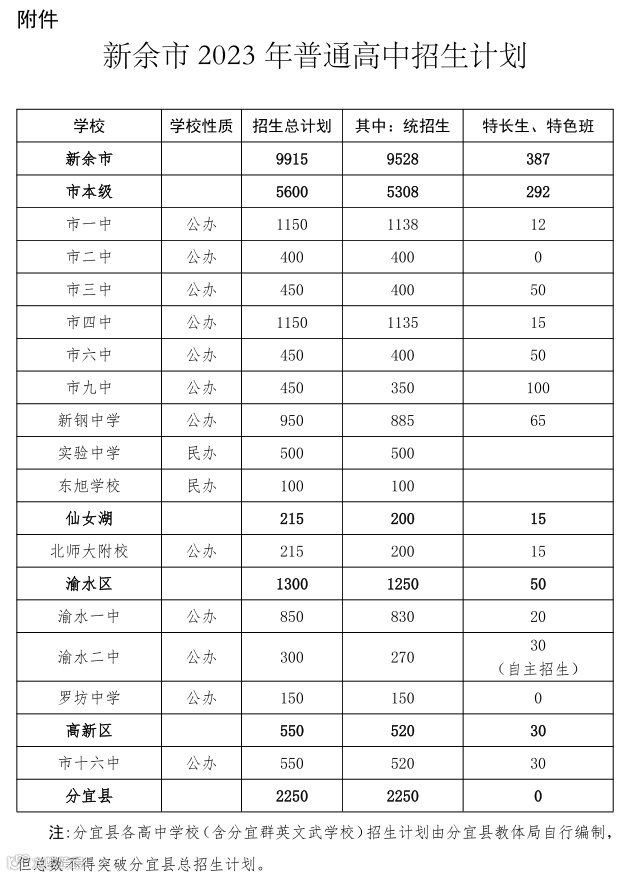 新余市2023年普通高中