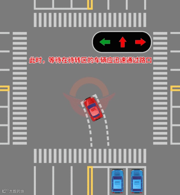 等候在待转区的车辆应迅速通过路口