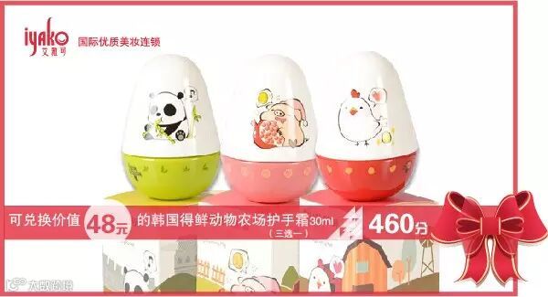 可兑换价值48元的韩国得鲜动物农场护手霜30ml(三选一)