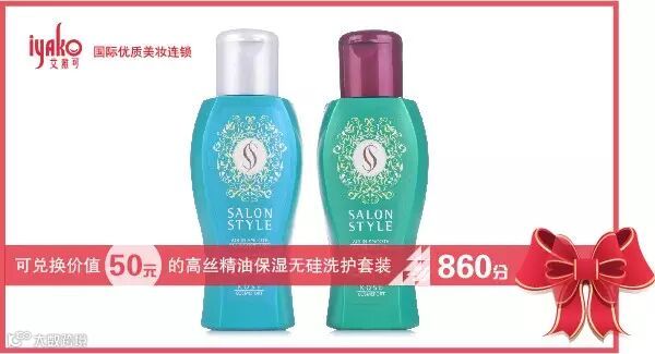 可兑换价值50元的高丝精油保湿无硅洗护套装;