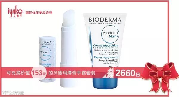 可兑换价值153元的贝德玛唇膏手霜套装;